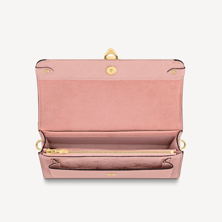 The Vavin Wallet on Chain is fashioned from Monogram Empreinte leather and finished with a gold-color lock inspired by Louis Vuitton trunks. This model in leather鈥檚 subtle tone-on-tone embossed print complements the wallet on chain classic lines perfectly. The front pocket, embossed with the Louis Vuitton signature, fits a phone, while inside pockets and compartments bring convenience.