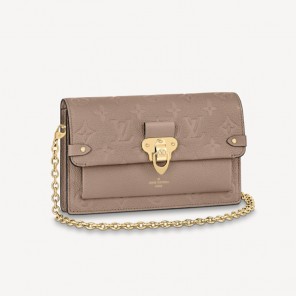 The Vavin Wallet on Chain is fashioned from Monogram Empreinte leather and finished with a gold-color lock inspired by Louis Vuitton trunks. This model in leather鈥檚 subtle tone-on-tone embossed print complements the wallet on chain classic lines perfectly. The front pocket, embossed with the Louis Vuitton signature, fits a phone, while inside pockets and compartments bring convenience.