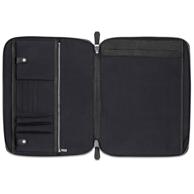 The Vladimir business portfolio, crafted in Taiga leather, is slim yet multi-functional with a double zipper closure. The practical internal layout houses essentials including PDA, battery and mouse.