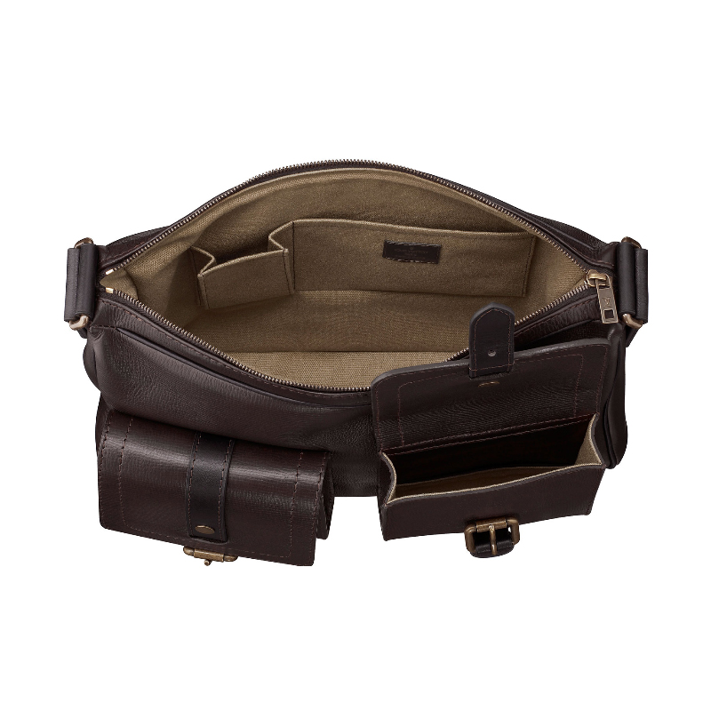 This city bag comes in Utah leather with rustic, cotton lining. Combining comfort and authenticity, it features an adjustable strap for carrying on the shoulder or across the body.