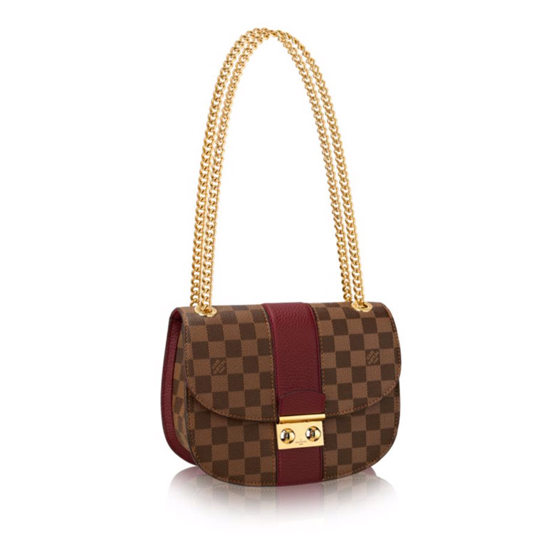 A great day-to-evening bag, the Wight mixes emblematic Damier Eb猫ne canvas with a generous stripe of colorful Cuir Taurillon leather for easy elegance. The thin golden chain and signed eyelets and delicate lock further embolden this study in casual chic.