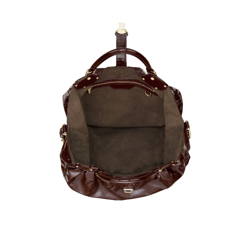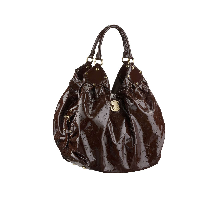 The Surya range is named after the Hindu Sun God because of its radiance. This XL bag, in supple, discreetly perforated Monogram patent leather, has sophisticated pleat work for body friendliness. The Surya leather is qualitative and lends itself to play with feminine details as well as an array of glossy and bright colors.