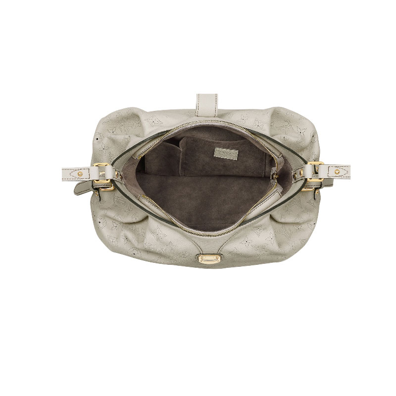 - Rounded contours enhanced by pleats, perforated Monogram details