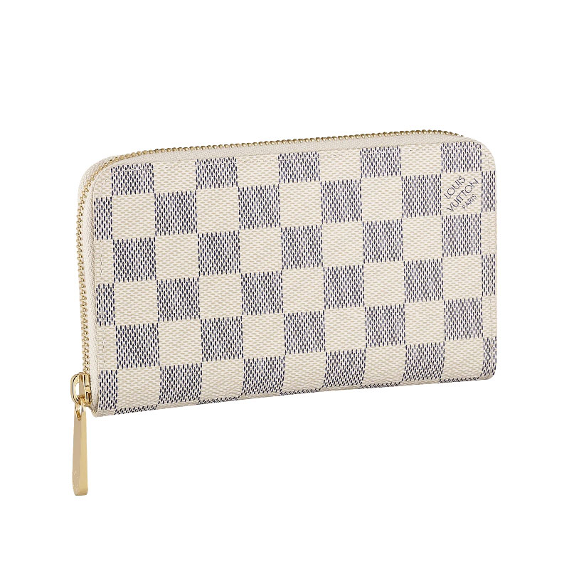 The bright and breezy Zippy Compact Wallet in Damier Azur canvas is fresh and feminine. The practical all-round zip opening reveals a supple calf leather lining and numerous pockets and compartments.