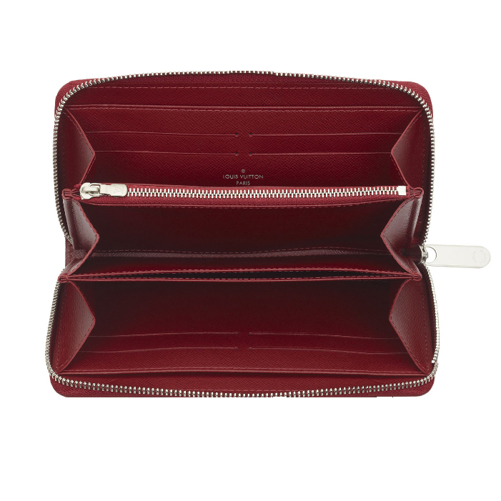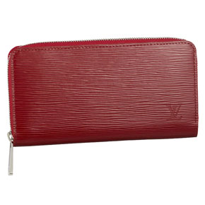 This practical wallet holds bills, credit cards, small change as well as identity papers. It comes in Epi leather and features a zipper closure.