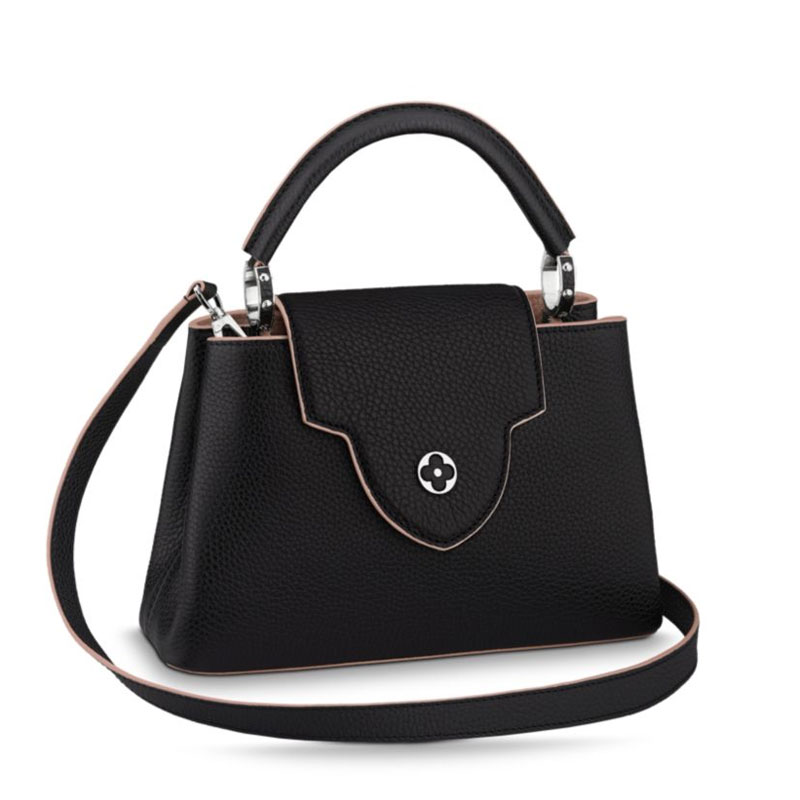 The fashionable mini size of Capucines BB lends an intense pop of contrasting colors to wardrobe styles from classic to daring. Finished with shiny palladium accents, the Capucines BB comes with a removable long shoulder strap for casual shoulder or cross-body wear.
