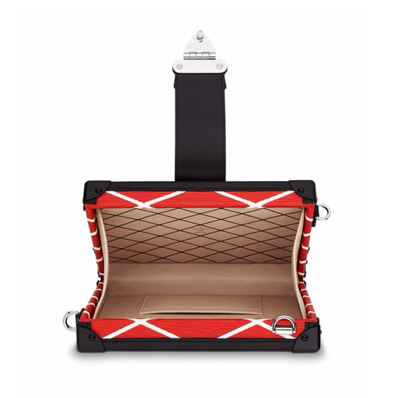 At his Cruise 2015 show, Nicolas Ghesquiere introduced a clutch of covetable new Petites Malles models. Among them, this little bijou stands out: it is a timeless example of House codes and craftsmanship, fashioned of textured Epi leather printed with the Malletage motif, a pattern adapted from the linings of classic Vuitton trunks. An LV circle logo on the keybell adds yet another signature touch. The bag鈥檚 detachable strap, so practical for daytime, can be removed for evening wear.