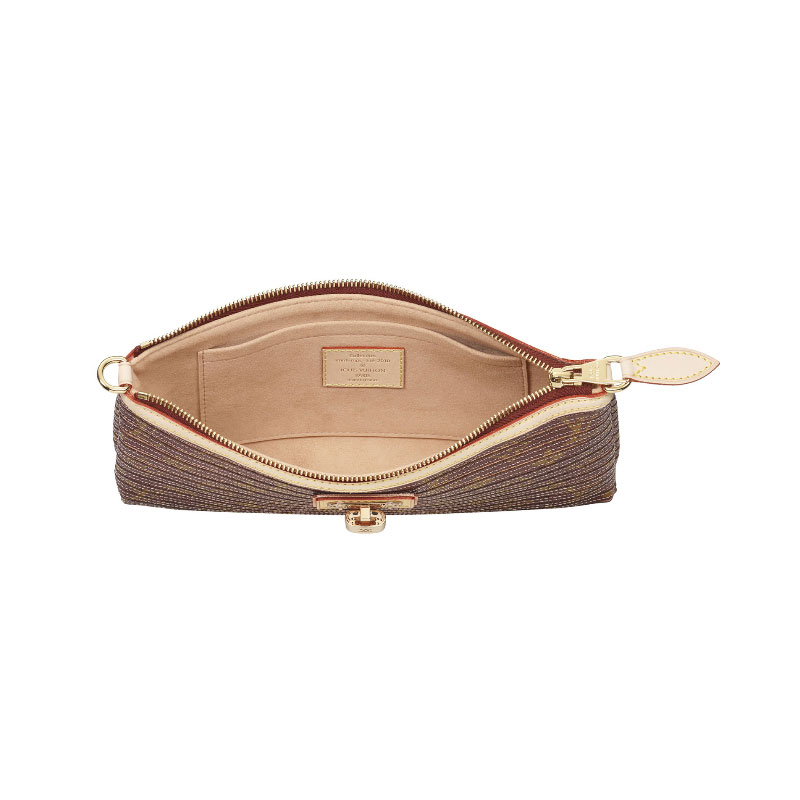 -Lambskin embroidered with stripes of metallic Monogram canvas