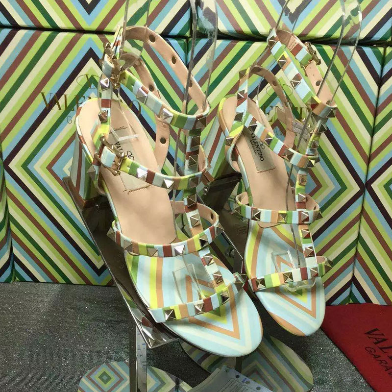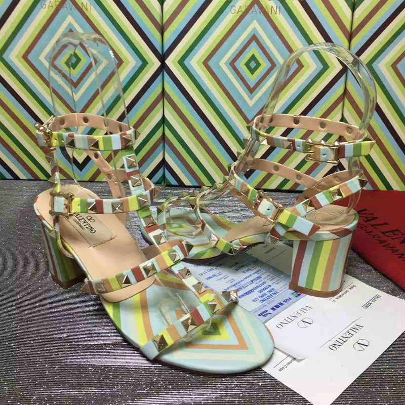 2016 Valentino women Sandals shoes with Rivet Heel Height 6.5cm
