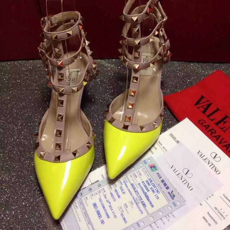 2016 Valentino women shoes in patent leather with Rivet Heel Height 6.5cm