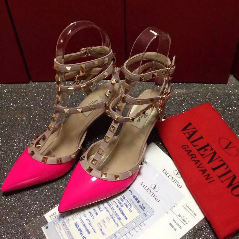2016 Valentino women shoes in patent leather with Rivet Heel Height 6.5cm