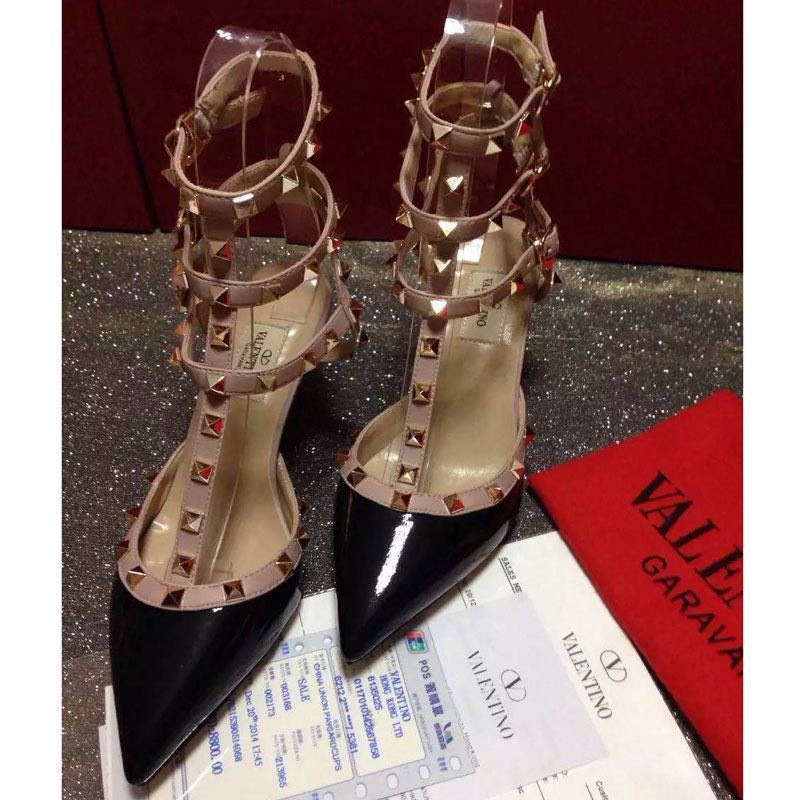 2016 Valentino women shoes in patent leather with Rivet Heel Height 6.5cm
