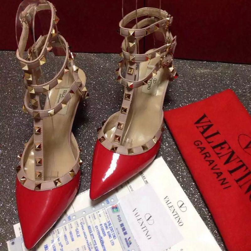 2016 Valentino women shoes in patent leather with Rivet Heel Height 6.5cm