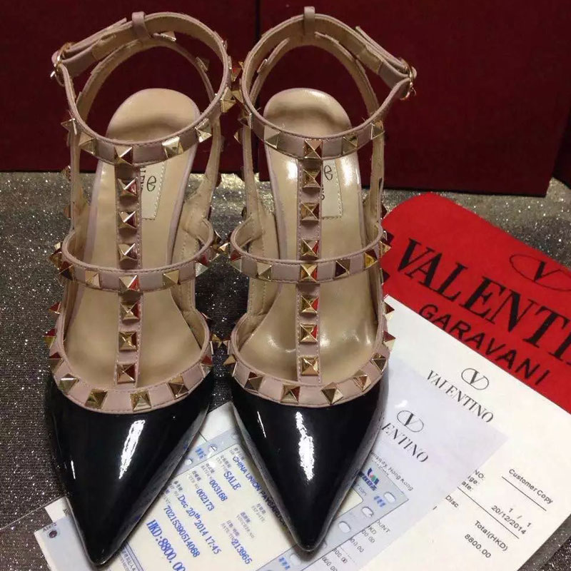 2016 Valentino women shoes in patent leather with Rivet Heel Height 9.5cm