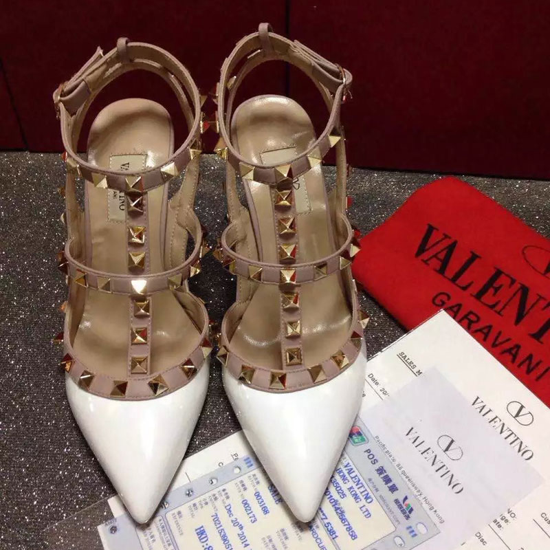 2016 Valentino women shoes in patent leather with Rivet Heel Height 9.5cm