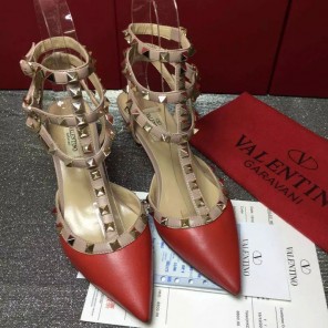 2016 Valentino women shoes in sheepskin leather with Rivet Heel Height 6.5cm