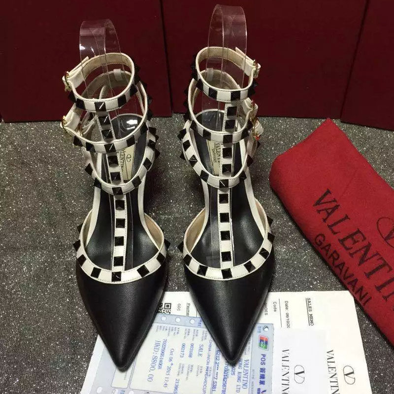 2016 Valentino women shoes in sheepskin leather with Rivet Heel Height 6.5cm
