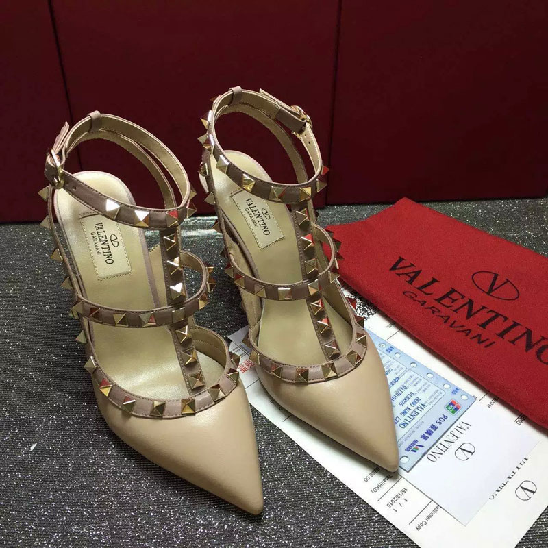 2016 Valentino women shoes in sheepskin leather with Rivet Heel Height 9.5cm