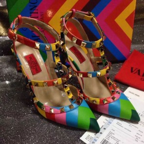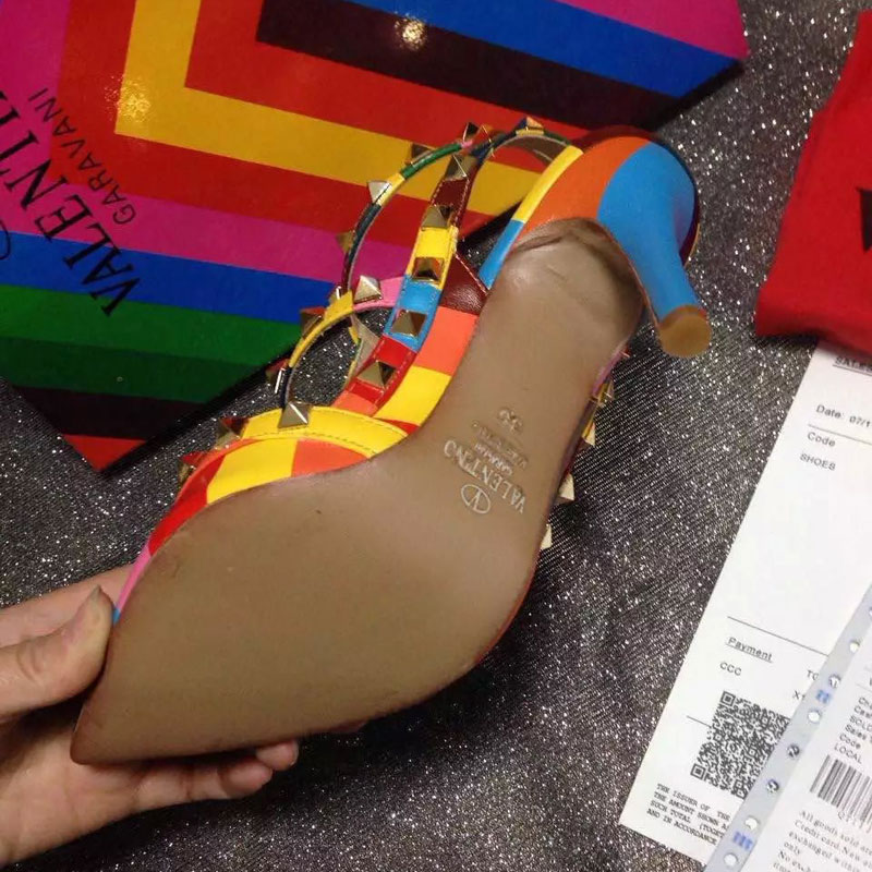2016 Valentino women shoes in sheepskin leather with Rivet Heel Height 9.5cm