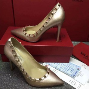 2016 Valentino women shoes in sheepskin leather with Rivet Heel Height 9.5cm