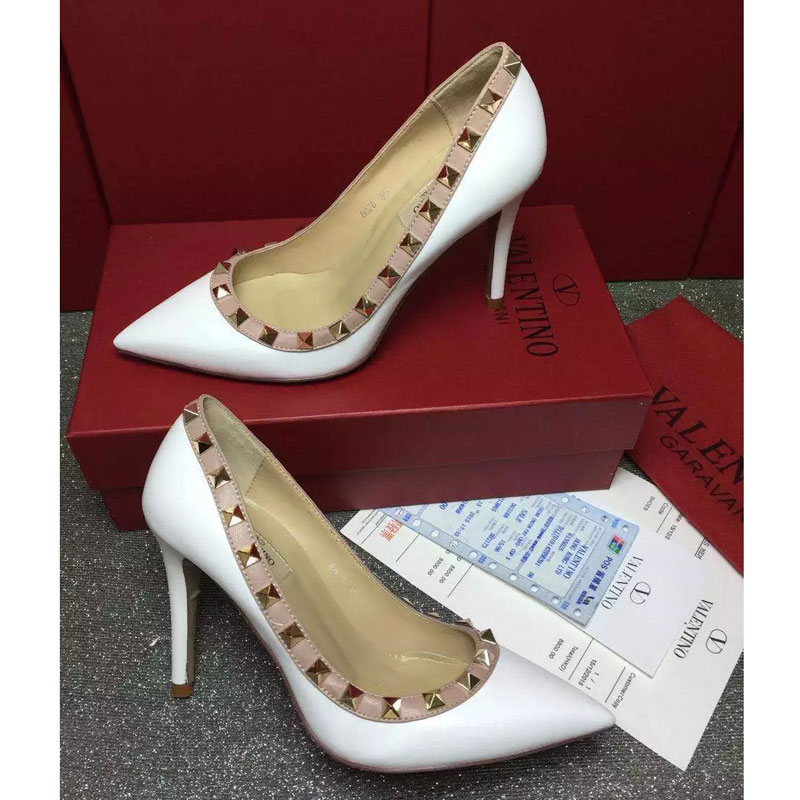 2016 Valentino women shoes in sheepskin leather with Rivet Heel Height 9.5cm