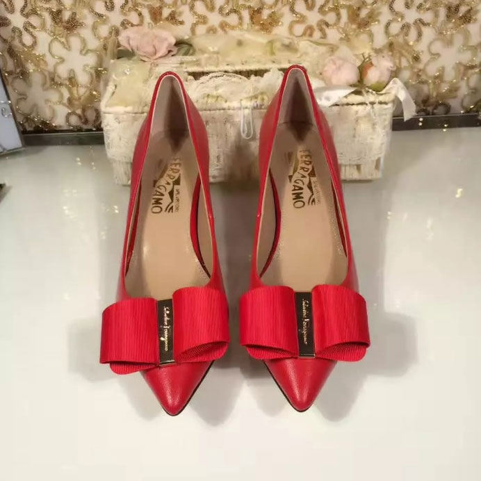2017 Ferragamo women shoes in Lambskin leather Heel Height 5cm