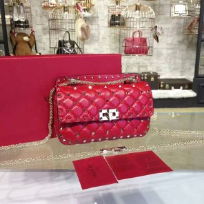 Valentino Garavani Rockstud Spike chain bag in soft lambskin leather. Quilting technique and micro stud details. Thanks to the detachable top handle and the sliding and detachable chain strap, the bag can be worn as a shoulder/crossbody bag or carried by hand