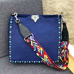 Valentino Garavani Guitar Rockstud Rolling hobo bag in Denim