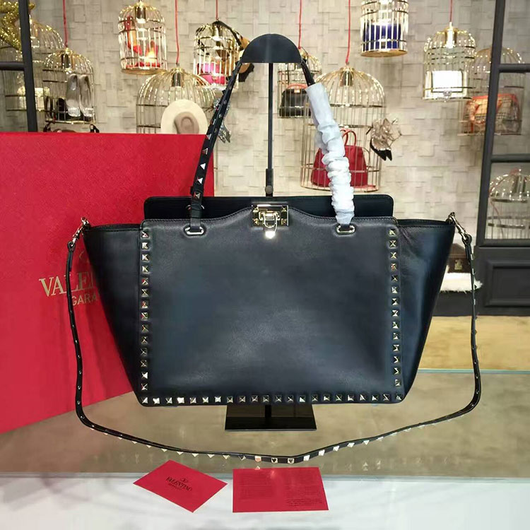2017 Valentino ROCKSTUD NOIR MEDIUM TOTE 0973