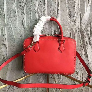 Valentino Garavani Rockstud small duffel handbag in calfskin. The outline of the bag is detailed with microstuds.