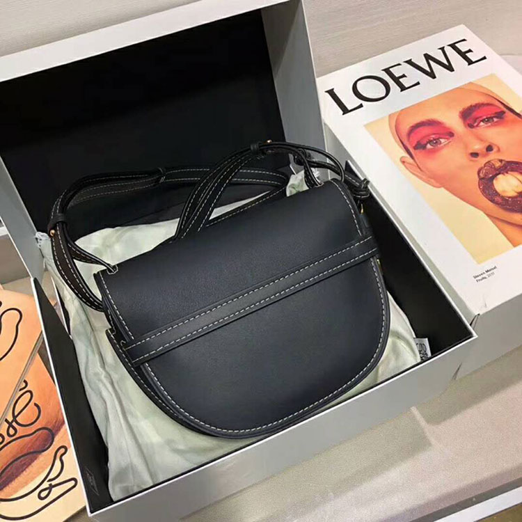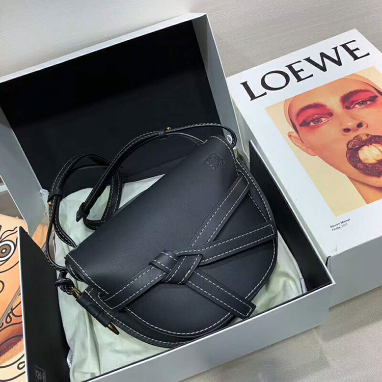 Saddle-shaped crossbody bag, timeless functionality reimagined in a contemporary way due to its refined and sleek construction. Gate bag owes its name to its side latched metallic pin with a flirty dangling leather strip and its knotted front belt bow closure. Gate perfectly embodies LOEWE's artisanal savoir faire with a new sensibility, skillfully handcrafted from high-end leathers, designed to wear beautifully over time.