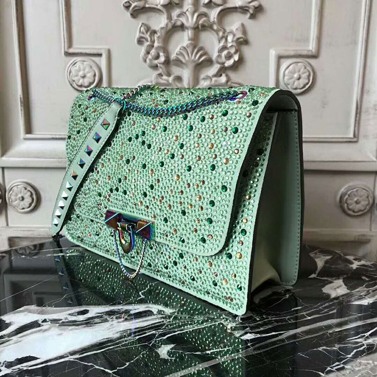 Valentino Garavani Demilune small cross-body bag in soft calfskin leather with a natural feel and shiny finish. Thanks to the adjustable chain strap the bag can be worn as a shoulder or cross-body bag