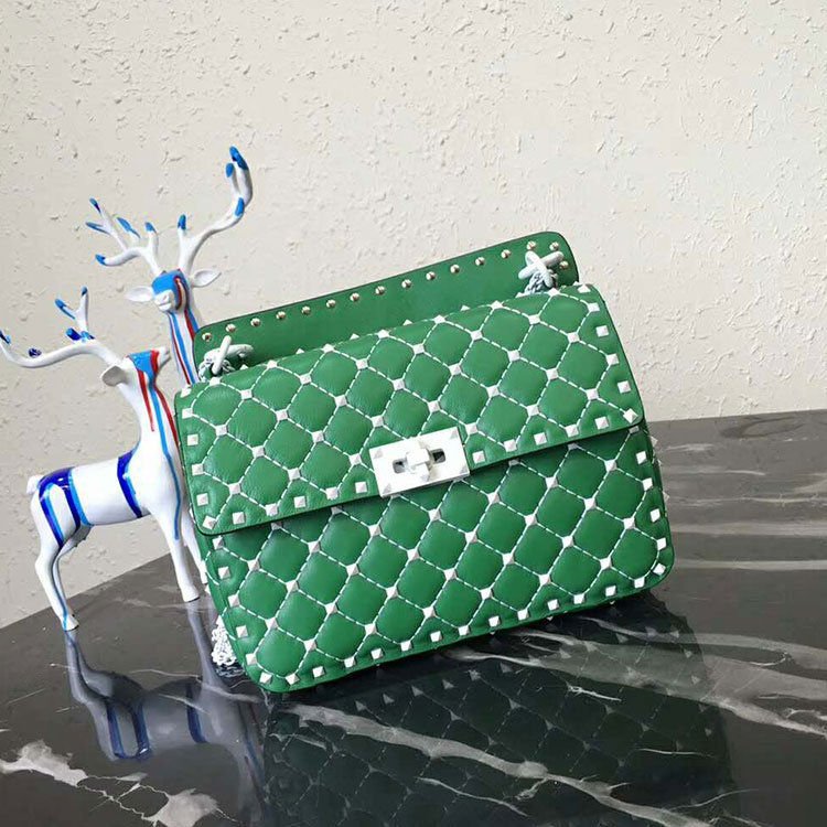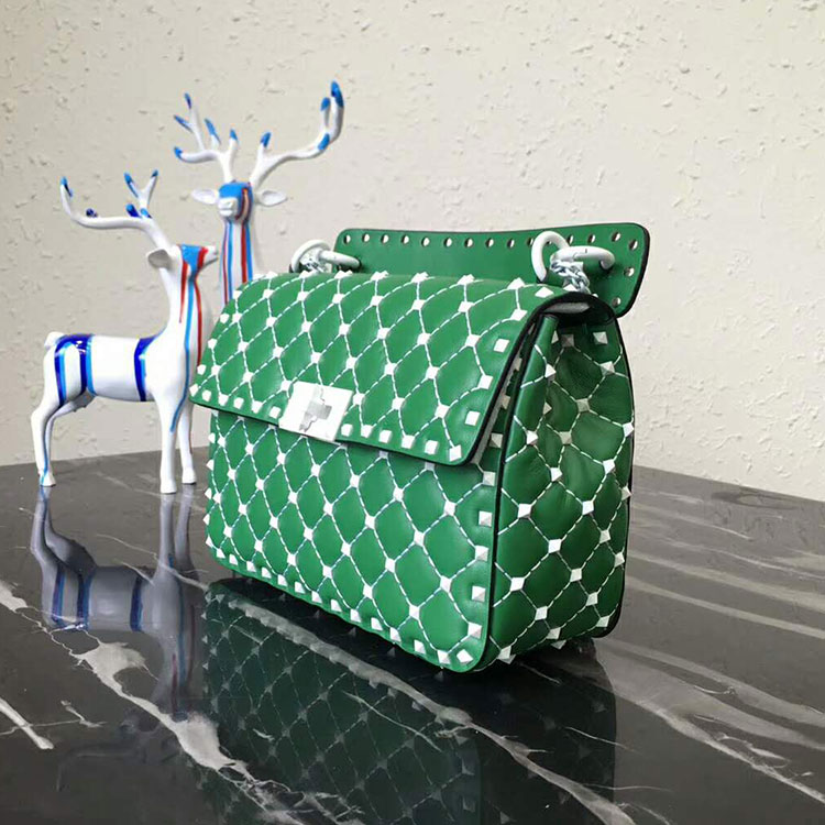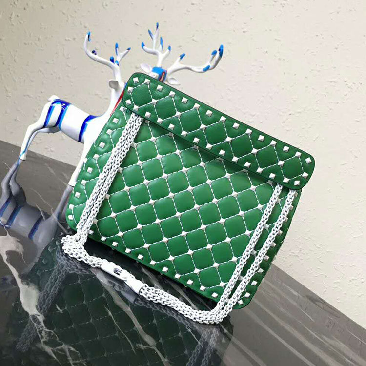 Valentino Garavani Free Rockstud Spike medium chain bag in soft lambskin leather. Quilted item with micro stud detailing. The detachable top handle and the adjustable and detachable chain strap mean the bag can be worn as a shoulder bag, cross-body bag, or be carried by hand.