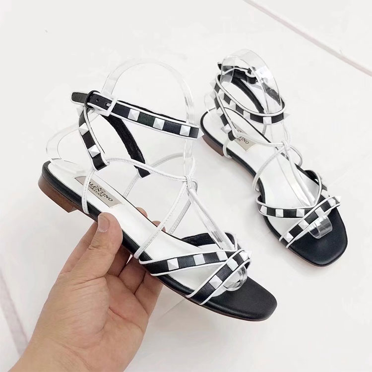 2018 Valentino women Flat Sandal in Calfskin with rivet