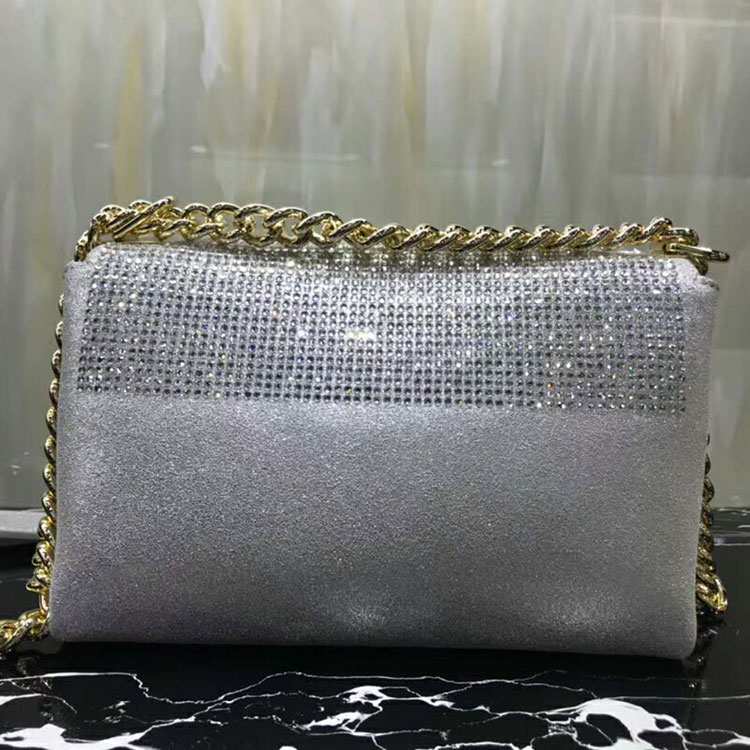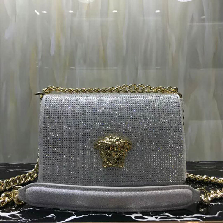 Evening bag from the Palazzo line with chain shoulder strap, central Medusa icon and fold-over flap closure.
