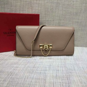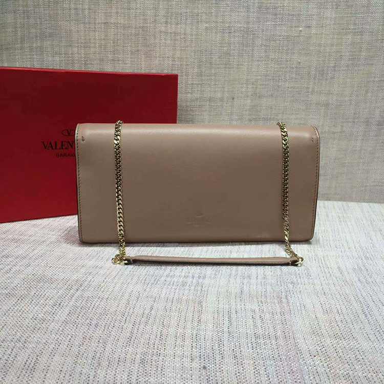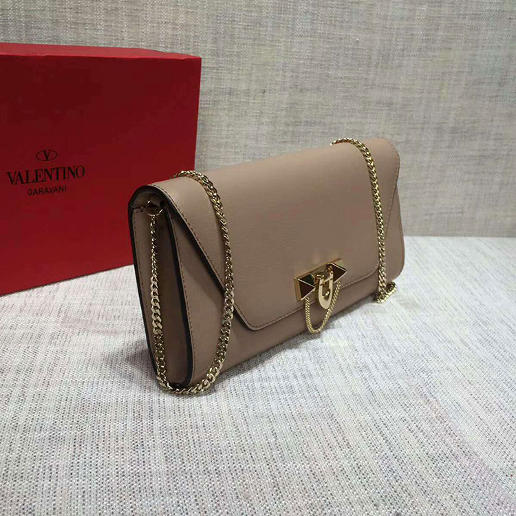 Valentino Garavani Demilune clutch in soft full grain calfskin leather with a natural hand and shiny finishing. The detachable chain strap means the bag can be carried by hand or worn as a shoulder bag or cross body bag.