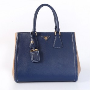 2013 PRADA BN2438 Saffiano Leather Tote Bag in Dark Blue with Apricot