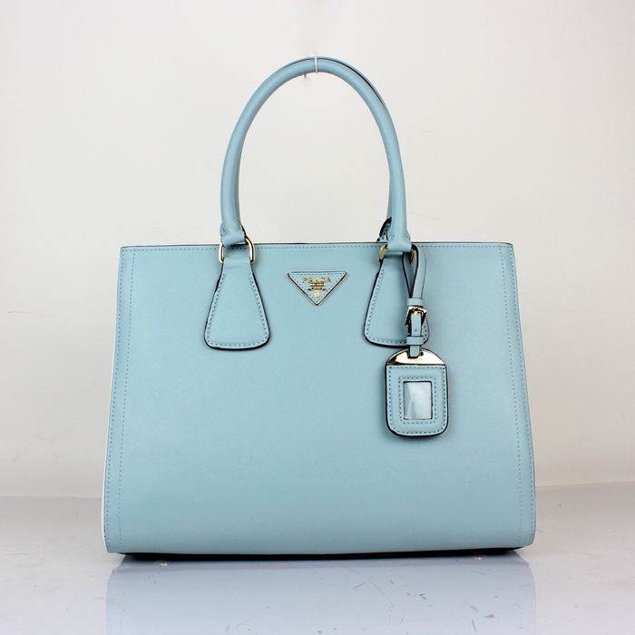 2013 PRADA BN2438 Saffiano Leather Tote Bag in Light blue with white