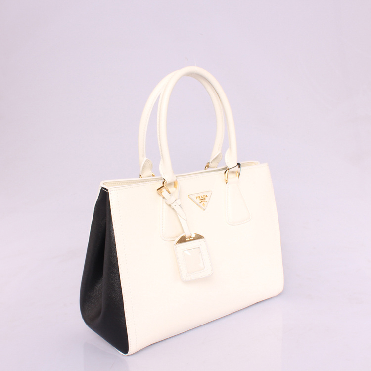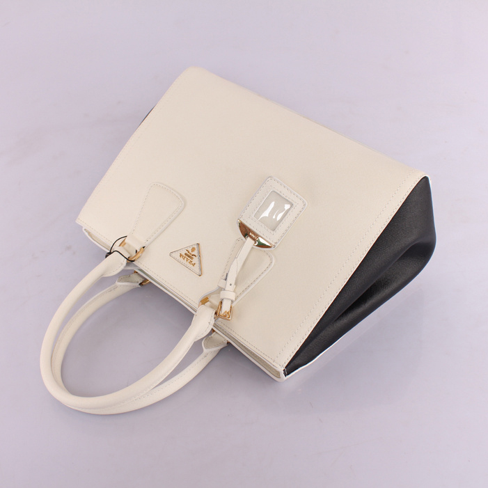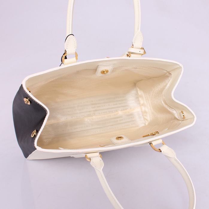2013 PRADA BN2438 Saffiano Leather Tote Bag in White with Black