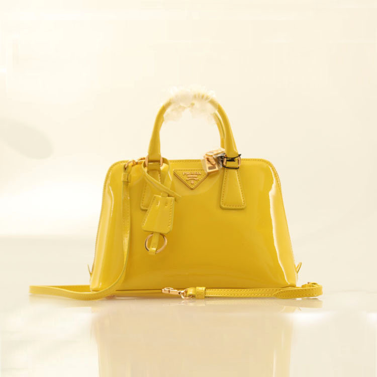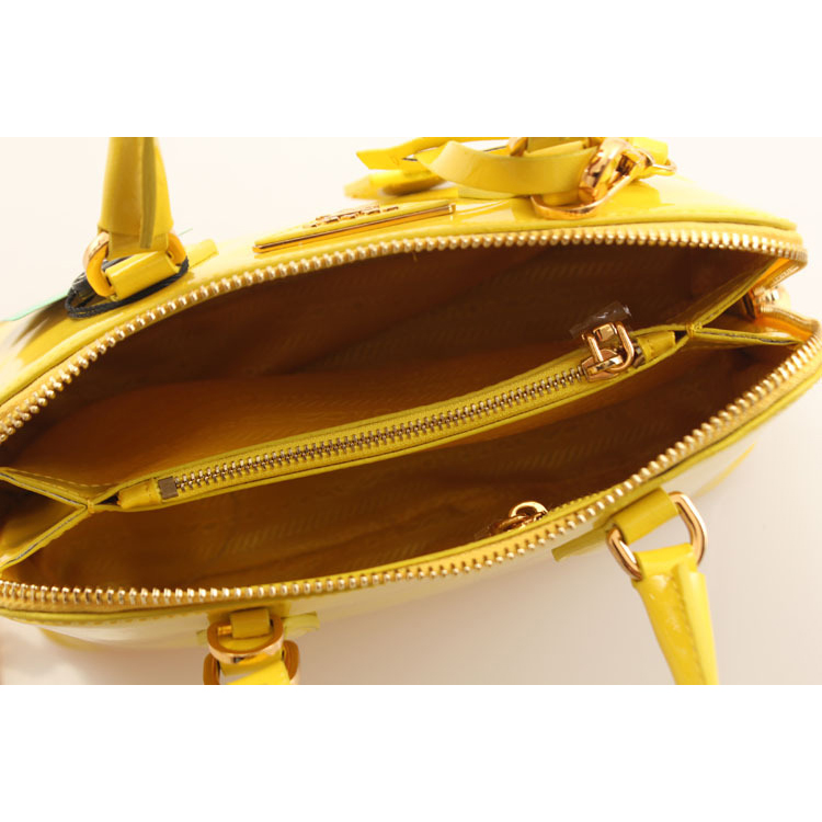 2013 PRADA Patent Leather tote bag 0838 in lemon yellow