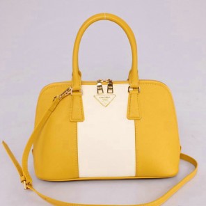 2013 PRADA Saffiano Leather Two Handle Bag 0837 in Lemon with OffWhite