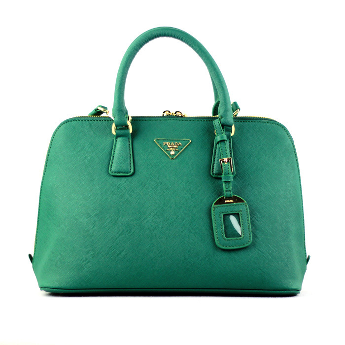 2013 Prada Saffiano Leather 33CM Two Handle Bag 0812 in Black green