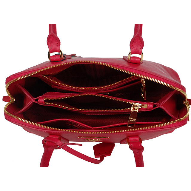 2013 Prada Saffiano Leather 33CM Two Handle Bag 0812 in Rose Red