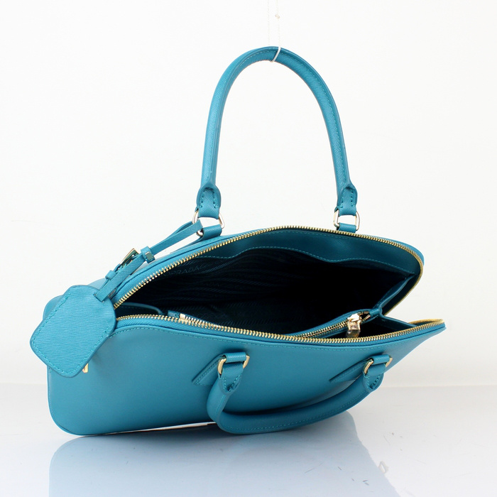 2013 Prada Saffiano Leather 33CM Two Handle Bag 0837 in Lake blue