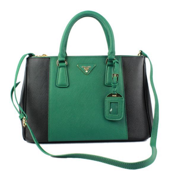 2013 Prada Saffiano Leather Tote Bag 2274 in Black with Green