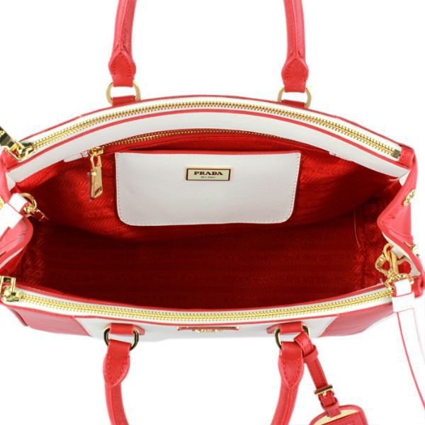 2013 Prada Saffiano Leather Tote Bag 2274 in Flame with White come with: serial numbers, care booklet, Prada dust bag, Prada Card, tag
