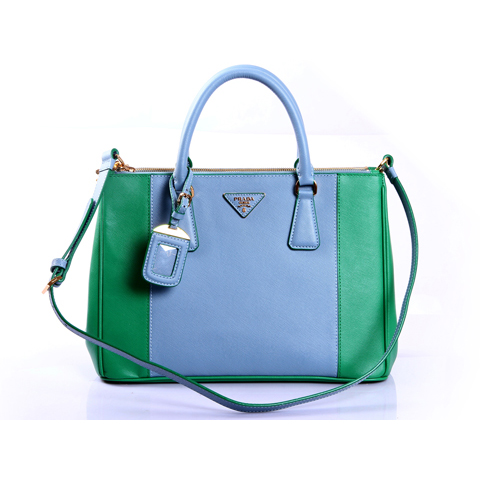 2013 Prada Saffiano Leather Tote Bag 2274 in Green with Skyblue
