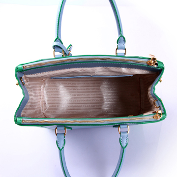 2013 Prada Saffiano Leather Tote Bag 2274 in Green with Skyblue come with: serial numbers, care booklet, Prada dust bag, Prada Card, tag