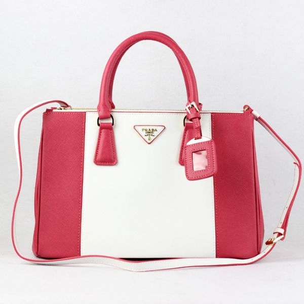 2013 Prada Saffiano Leather Tote Bag 2274 in Watermelon red with White