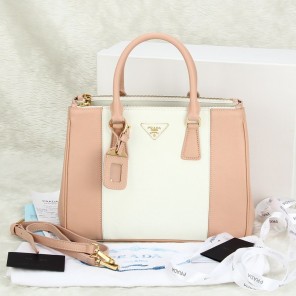 2013 Prada Saffiano Leather Tote Bag 2274 in white with Bare Pink